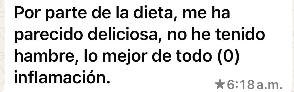LO MÁS IMPORTANTE … Te aseguro que si lo haces con disciplina, equilibrio y constancia vas a desinflamar todo tu cuerpo (piel, articulaciones, tu sistema nervioso y tu sistema digestivo), vas a lograr tu objetivo físico (pérdida de peso o ganancia muscular: recomposición corporal), vas a mejorar tus síntomas digestivos, vas a dormir mejor, a tener más energía para tu día a día y también para tus entrenamientos.